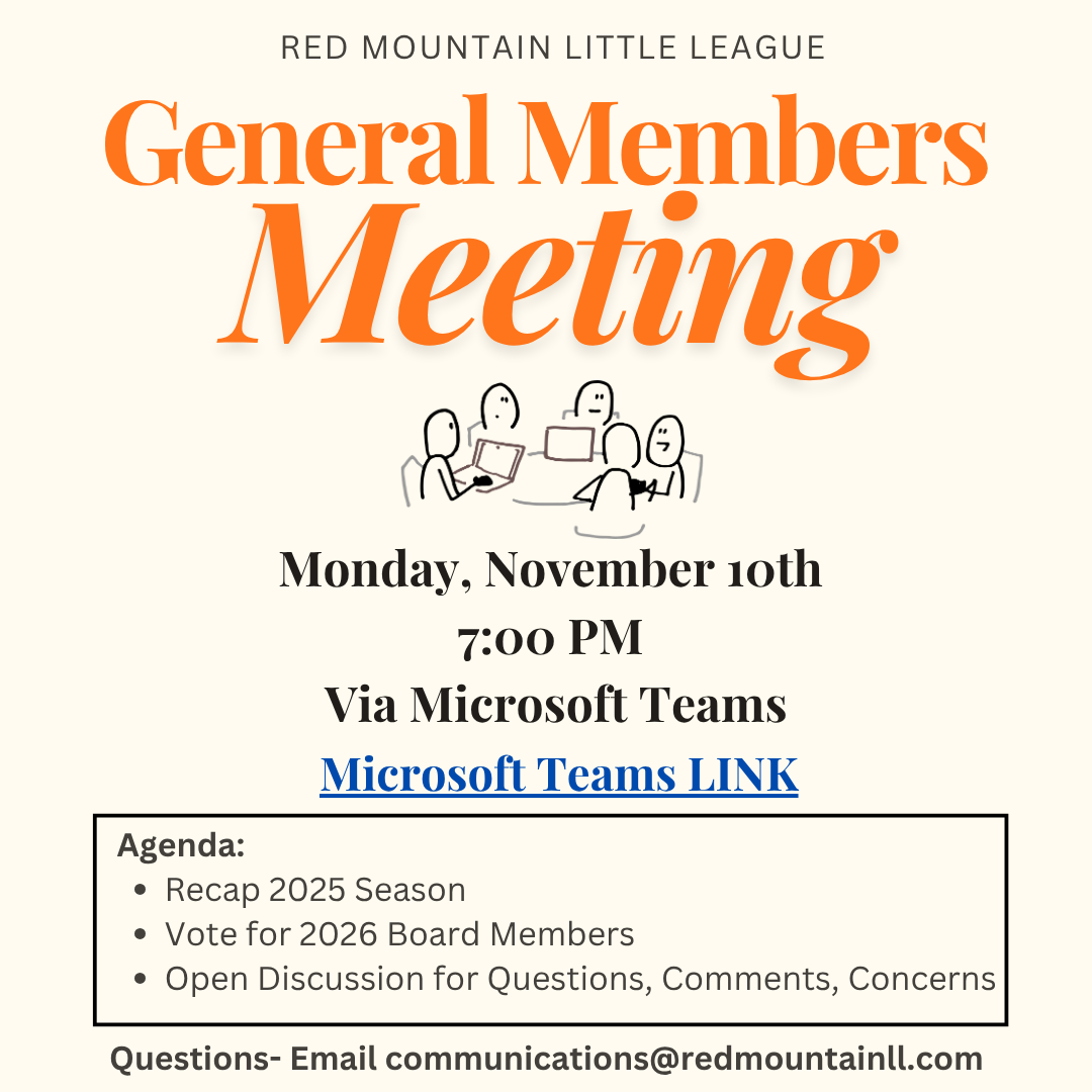 Address: Red Mountain Little League2733 N. Power Rd. Suite 102, PO Box 206Mesa, Arizona 85215 Email: [email protected]